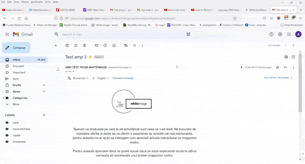 Nimic ce îţi poate afecta activitatea. E-mailurile AMP sunt preîncărcate cu o rezervă HTML, astfel încât abonaţii să aibă întotdeauna o experienţă de utilizator bună, indiferent dacă clientul de e-mail acceptă sau nu AMP. Astfel dacă un client de email nu permite afişarea de AMP acesta va primi automat varianta HTML.